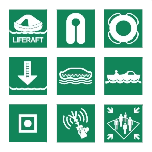 wird vervollständigt durch hinzufügen normgerechter Symbole-Sicherheitszeichen entsprechend der NORM DIN EN 17556, der Legende und verschiedener Daten vom Schiff.